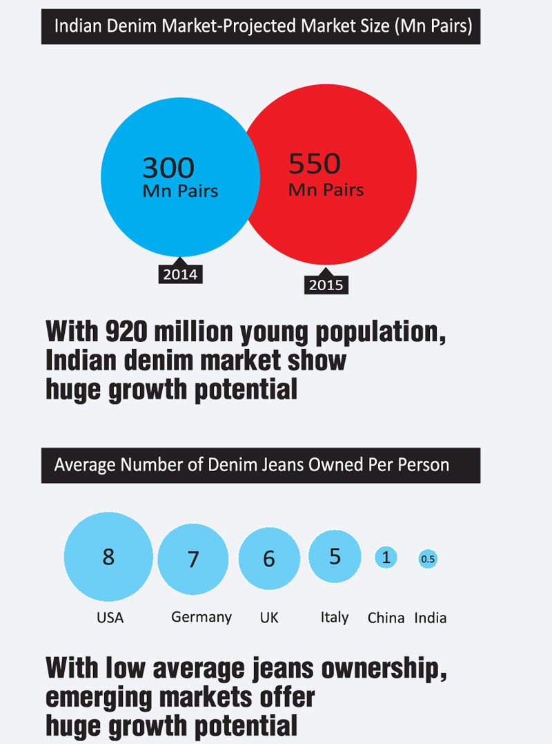 With the traditional markets slowing down, new pockets of retail growth are emerging. CBRE Global Research & Consulting, a major retail research firm predicts that the Asia-Pacific region will account for just under half of the world’s retail sales in 2016, and amongst the most popular products would be denim wear, predominantly jeans. Even though, the region is among the latest to join the denim craze, the market is fast growing and in India alone the domestic market of denim products is growing at 15% CAGR.